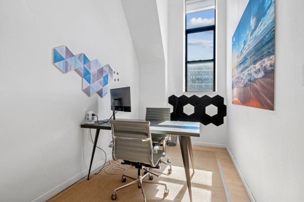 Nicely built installation which consists of one small cozy conference room, three offices, a wet pantry, and an open are for around 15 workstations. Three sides of light and views. Tenant controlled HVAC and directly metered electric.